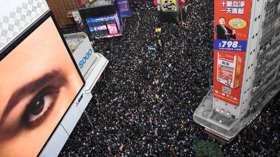 Se cumplen seis meses de protestas en Hong Kong y las movilizaciones no dan señales de perder fuelle. Estimulados por la aplastante victoria de la oposición hace dos semanas, cientos de miles de personas —unos 800.000 según los organizadores, 183.000 según la policía— han salido de nuevo a la calle este domingo por el centro de la isla para demostrar que el tiempo no mella su voluntad de ser escuchados y exigir que, de una vez, el Gobierno autónomo y Pekín les hagan caso en sus exigencias de mayor democracia y rendición de cuentas.