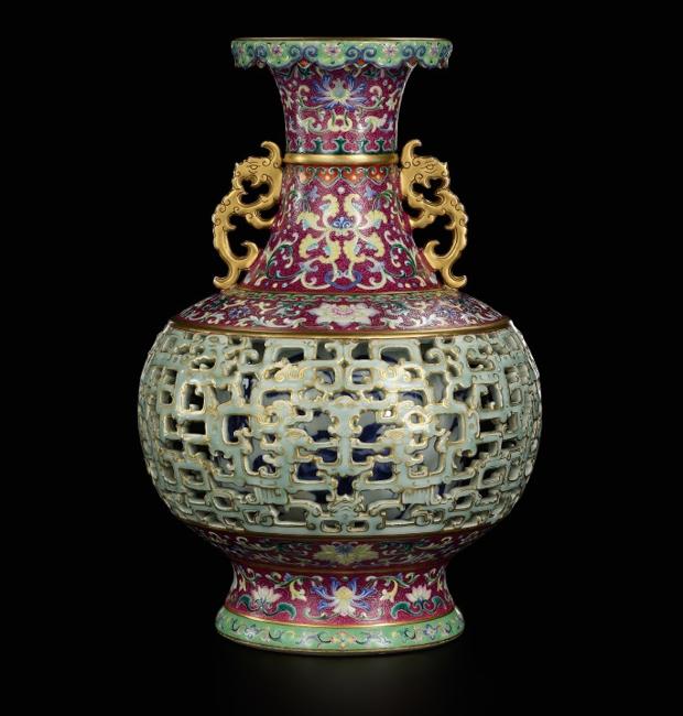 El excepcional jarrón, con un diseño floral azul y blanco es visible a través de un fino cuerpo enrejado, fue realizado específicamente para el emperador Qianlong, quien gobernó China durante más de 60 años en el siglo XVIII y su reinado está considerado como una edad de oro de la civilización China, y marcó el apogeo de la dinastía Qing.