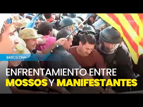 Enfrentamiento entre mossos y manifestantes que querían entrar en el Par...